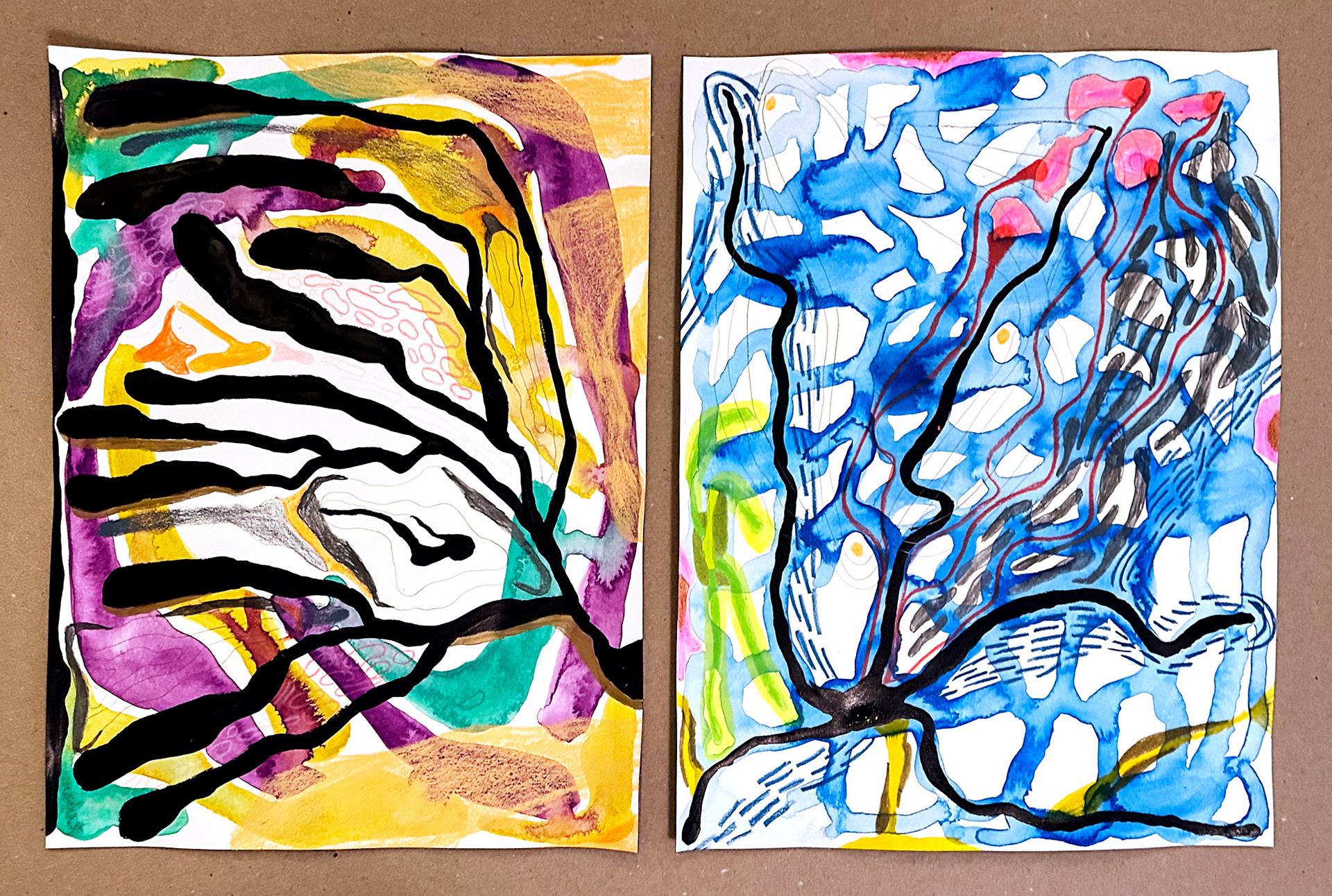 "Explosive Bloom/Personal Revelation" (left) | "Embryonic Tangle/Umbilical Flow" (right)
