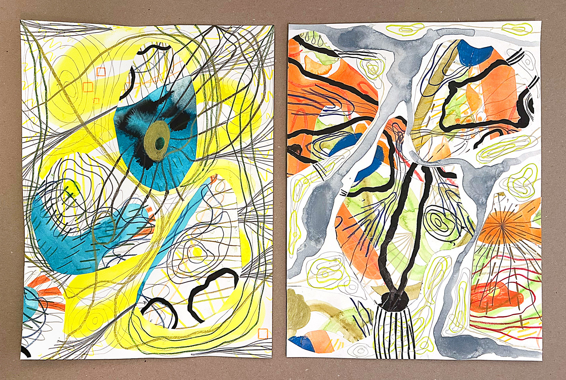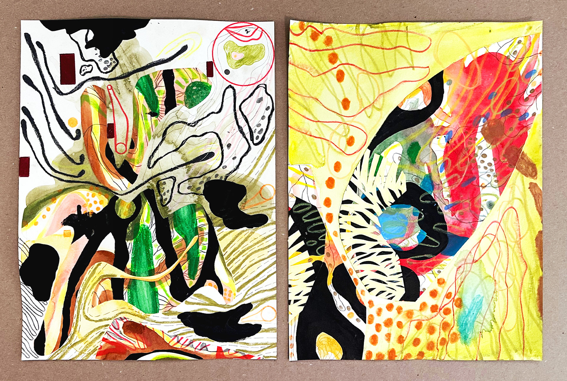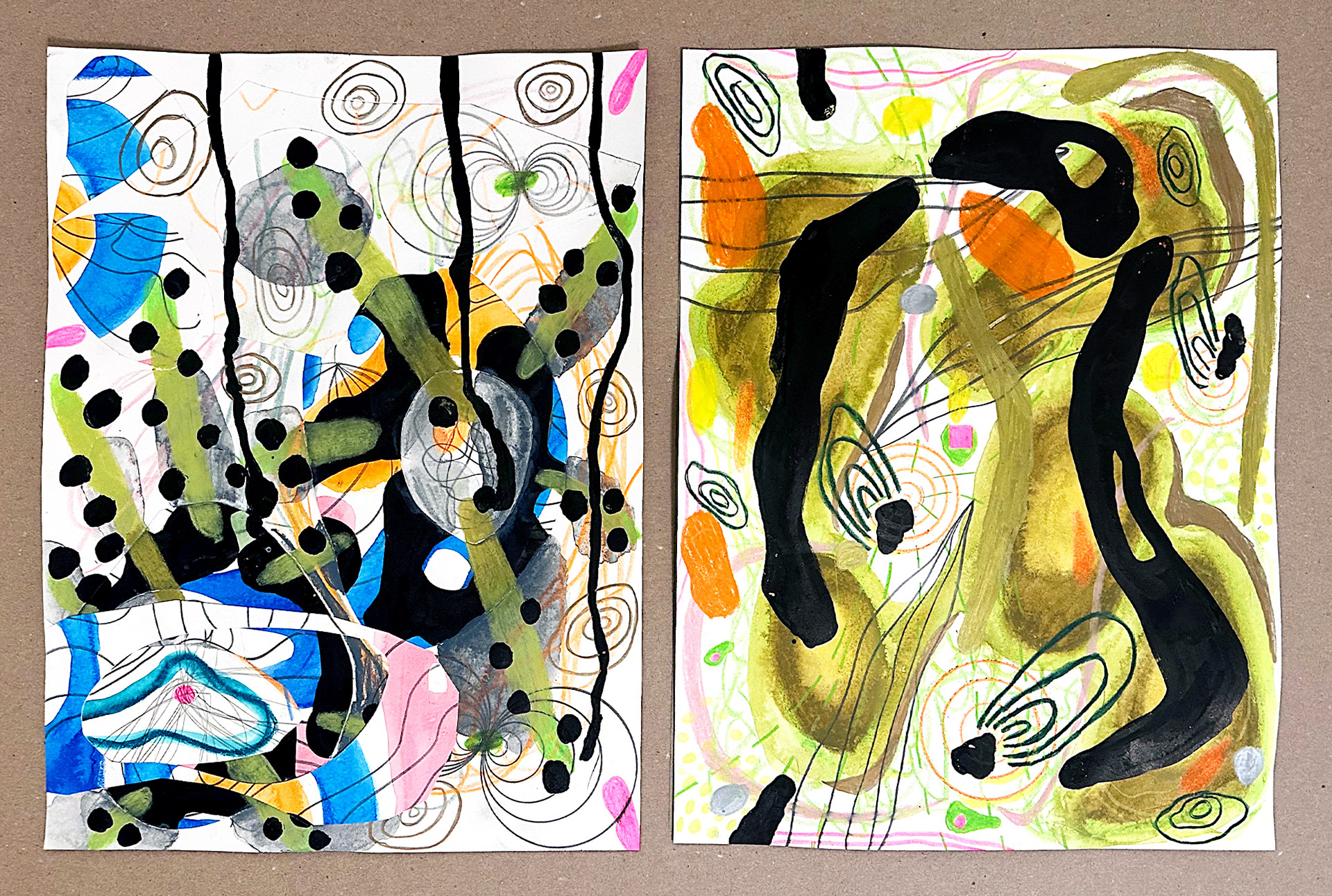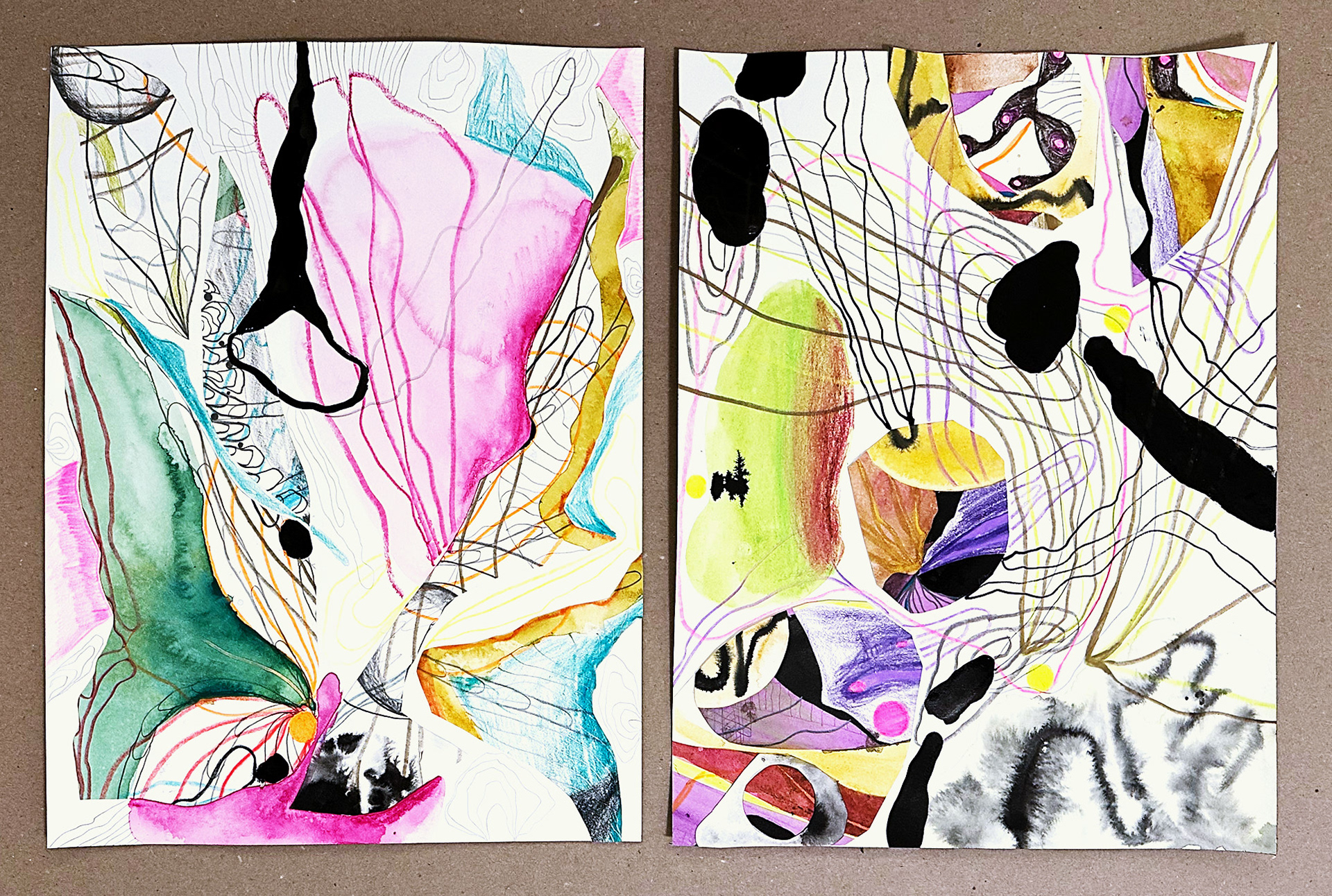 "Tide Pool in Flux/Kelp in Current/Queer Oceanography" (left) | "Crayons Cracked/Tinkertoys Splintered/Queer Adolescence" (right)